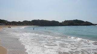 Jadwal hari kedua adalah... say hello to the beaches! Ya, jadwal hari ini adalah menghitam di pantai. Sekitar jam 9 am, Pak Made udah dateng dan destinasi pertama adalah Nusa Dua Beach. Nusa Dua jelas salah satu pantai yang masuk kategori 'private beach', errr... bukan private sih, tapi secara memang banyak hotel mewah di pinggirnya, ya kesannya jadi pantai buat para pengunjung hotel saja. Bahkan sunbeds pun disediain hanya buat penghuni hotel. Gue sama L nggak nyebur sama sekali sih. Secara siang itu panas banget, gue sama L hanya duduk dibawah payung bar yang belum buka. Kita cuma kurang dari 1 jam di Nusa Dua sebelum akhirnya di perjalanan pulang, makan nasi campur dulu.